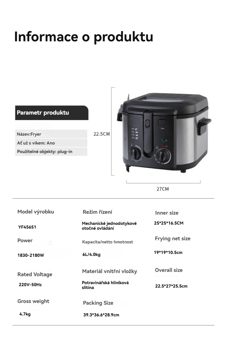 Velkokapacitní domácí fritéza
